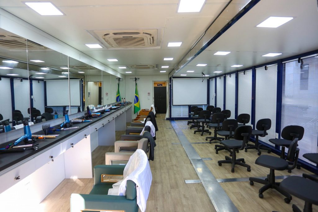 Cada carreta é adaptada com espaços acessíveis para aulas teóricas e práticas, sistema de presença por reconhecimento facial, internet Wi-Fi, câmeras de segurança, além de estrutura com banheiro e copa.