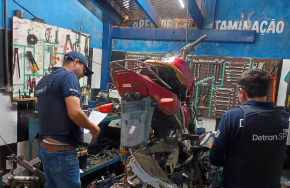 Em ação conjunta, o Departamento Estadual de Trânsito de São Paulo (Detran-SP) e a Companhia Ambiental do Estado de São Paulo (Cetesb) fiscalizaram 79 estabelecimentos no estado para atividade de desmontagem de veículos. Quarenta e três locais visitados estavam com o Parecer Técnico da Cetesb vencido e 48 indicaram problemas relativos à comercialização, como a venda de peças proibidas, motor de motocicleta com a numeração raspada, falta de nota fiscal de entrada e ausência de etiquetas de rastreabilidade.