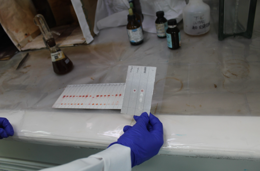 Existem vários métodos para constatar a presença de substâncias ilícitas, como o Tetrahidrocanabinol (THC), presente na maconha, por exemplo. O primeiro funciona por meio de reações químicas, chamado cromatografia em camada delgada. A droga é extraída da substância e transformada em líquido, sendo então colocada dentro de uma cuba, onde é misturada com produtos químicos. Ao entrar em contato com o THC, a substância reage. Depois de seca, é aplicado um líquido revelador. Quanto mais forte a cor, maior a quantidade da substância ilícita presente na droga. O teste leva, em média, 20 minutos.