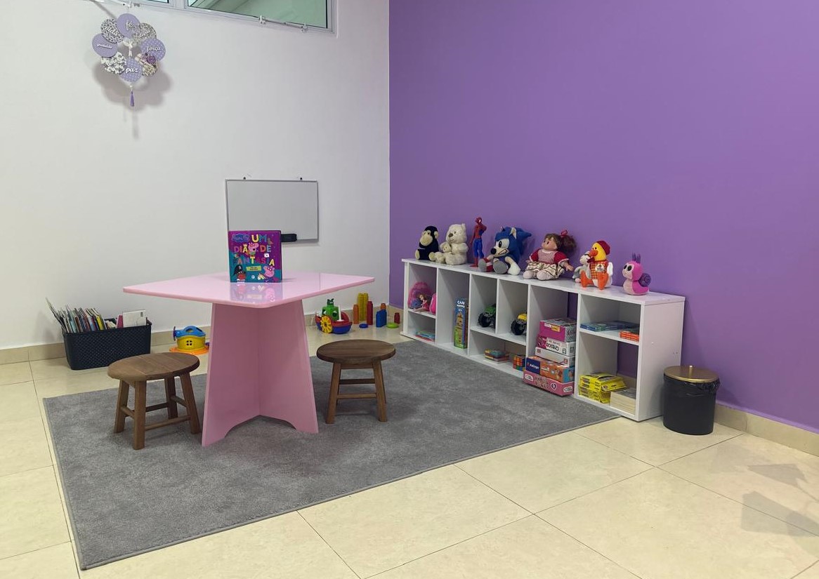Na Sala Lilás, o público tem acesso a dois espaços — a sala de espera e a sala de atendimento pericial. Ambas são decoradas com cores e itens que promovem a sensação de conforto e proteção, além de estar cercada por mensagens com intuito de ser agradável e transmitir positividade. Também conta com uma brinquedoteca para as crianças.