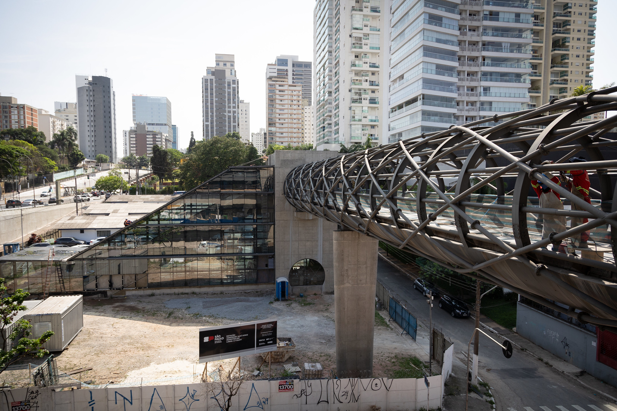 Construção da passarela que ligará Estação Campo Belo à Linha 5-Lilás, na avenida Roberto Marinho. Foto: Pablo Jacob/Governo de São Paulo