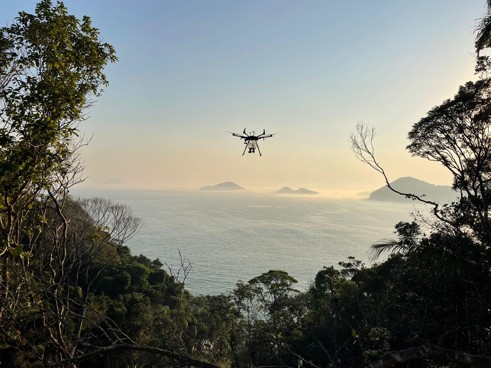 Tecnologia de ponta utiliza drones para lançar biocápsulas com sementes de espécies nativas da Mata Atlântica. Foto: Governo de SP