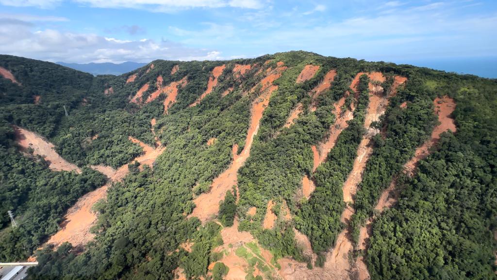 Ações envolvem o uso de drones e inteligência artificial na restauração da área afetada por deslizamentos no ano passado