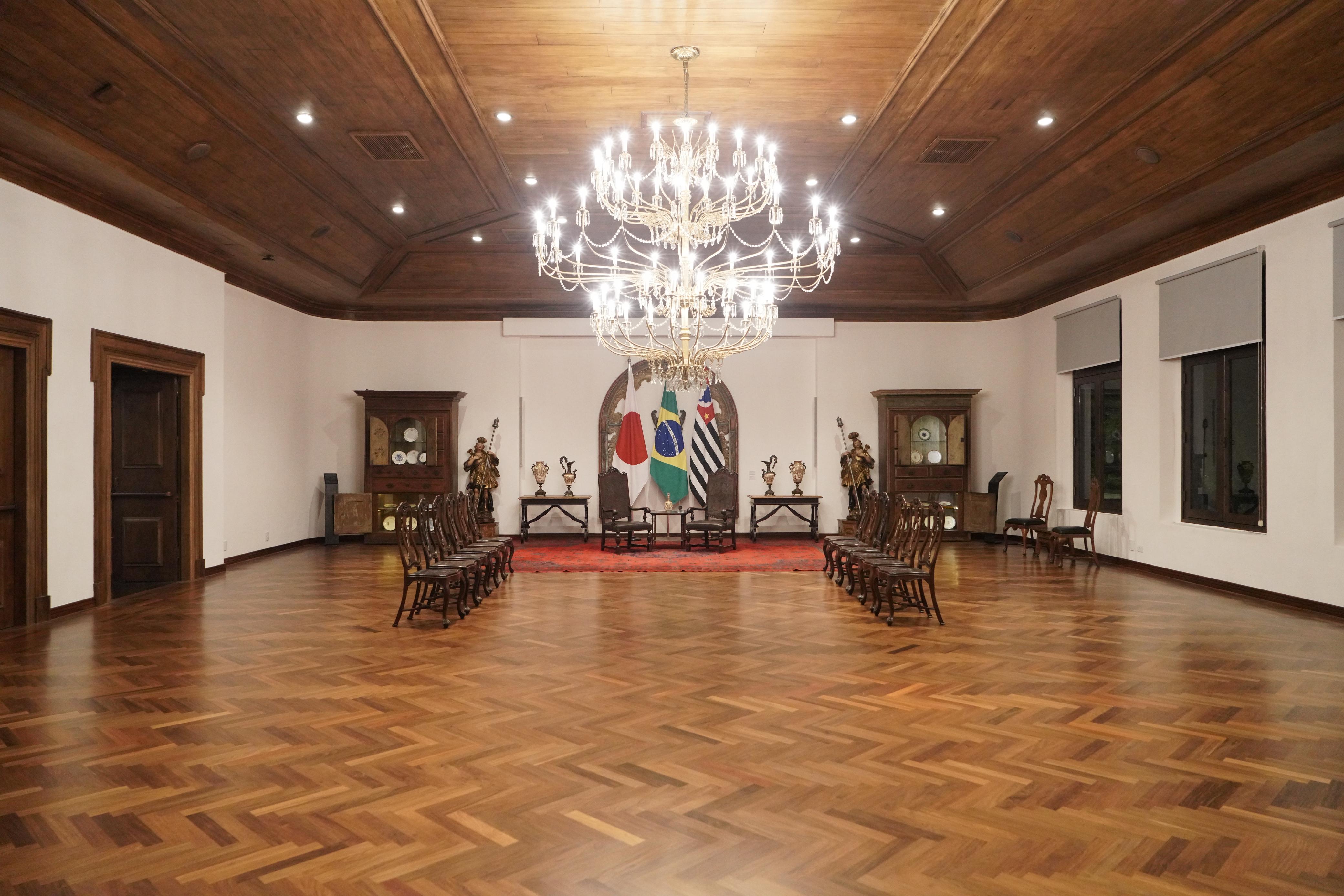 Com os elementos originais reparados, a reforma do ambiente inclui o restauro dos forros e portas de madeira, a instalação de novos pisos, pintura, restauração do lustre e curadoria de móveis, obras de arte e objetos históricos. As próximas salas a serem renovadas são o Salão dos Conselhos e o Mezzanino.